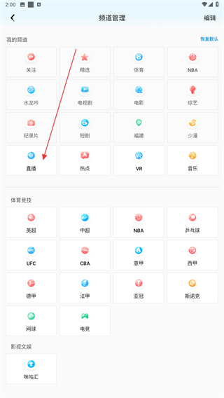 2、進入頻道管理的頁面內(nèi),在我的頻道下點擊直播即可。