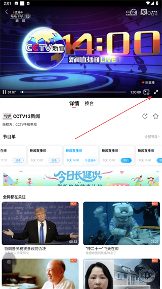 4、進入直播的界面內(nèi),點擊畫面右側(cè)的按鈕能夠更好的觀看。