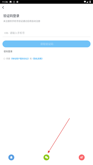 3、進入登錄的頁面內(nèi),點擊下方微信登錄的圖標即可。