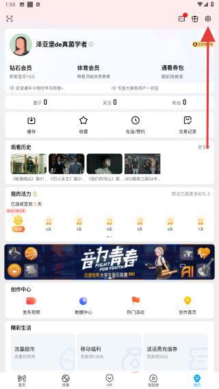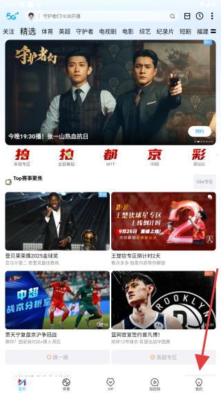 1、啟動(dòng)咪咕視頻的應(yīng)用軟件,在首頁(yè)內(nèi)點(diǎn)擊右下角我的圖標(biāo)。