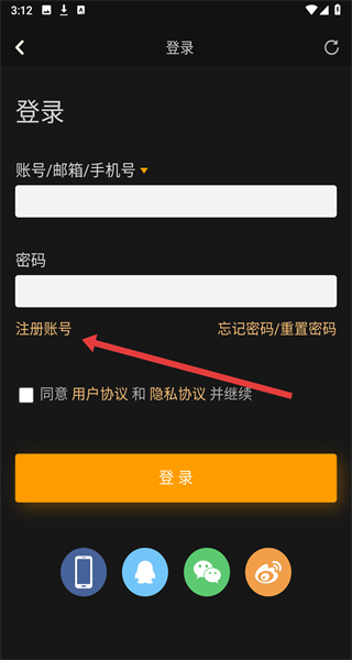 3、在進(jìn)入到登錄頁面后,若沒有賬號可以點(diǎn)擊注冊賬號按鈕,進(jìn)行注冊。