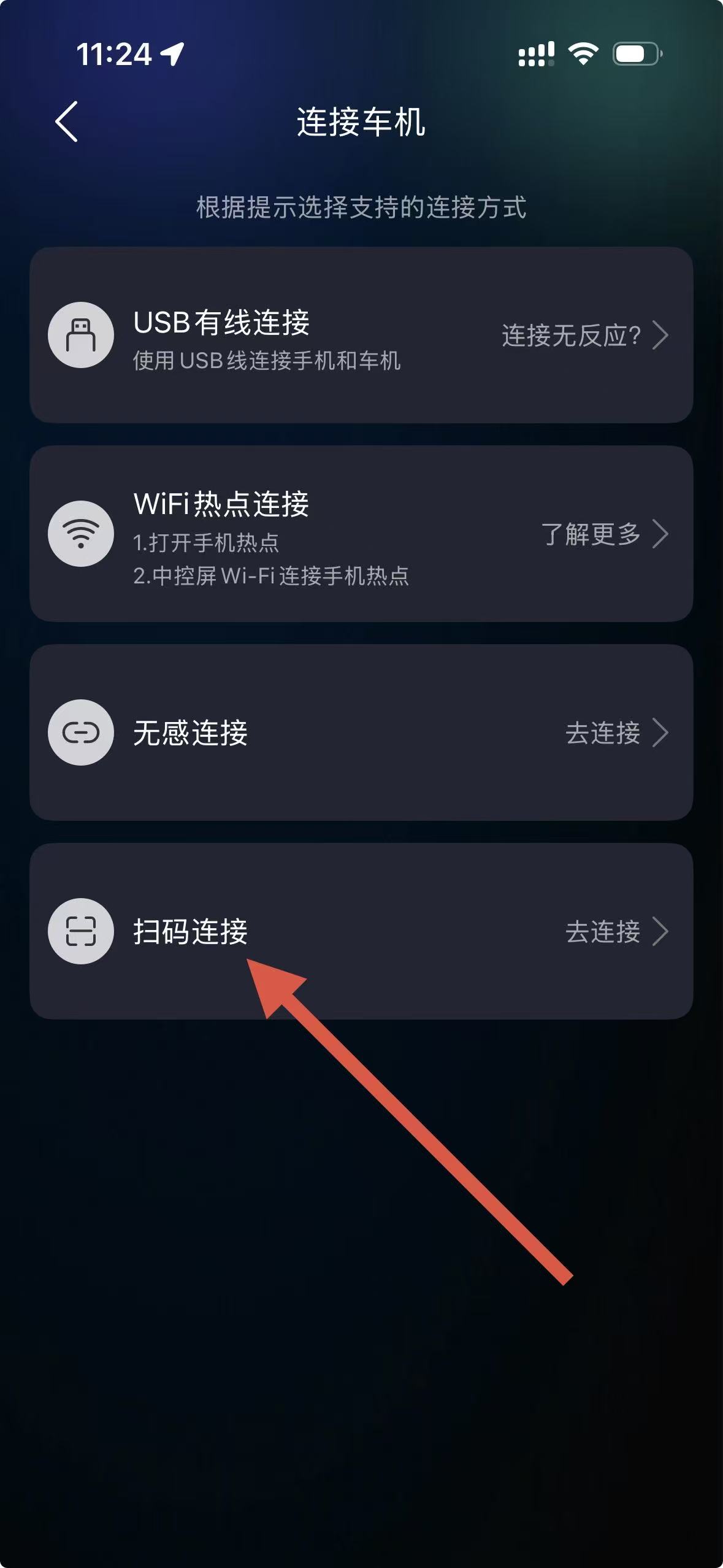 2、進(jìn)入連接方式選擇頁(yè)面后,需要去選擇掃碼連接選項(xiàng)。