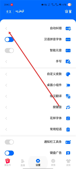 1、打開維語輸入法應(yīng)用,點擊頁面底部的設(shè)置選項,進入應(yīng)用的設(shè)置功能頁面。
