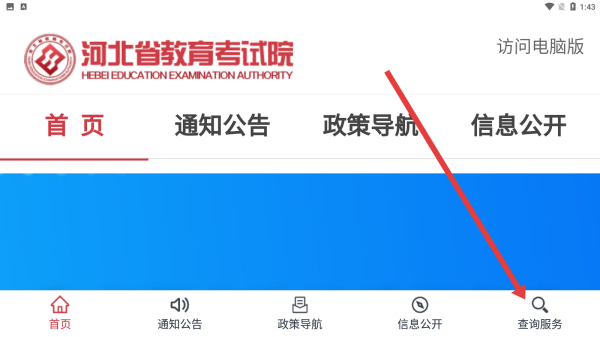 1、在掌上考試院首頁中,可以點擊底部的查詢服務按鈕,進入查詢服務頁面。