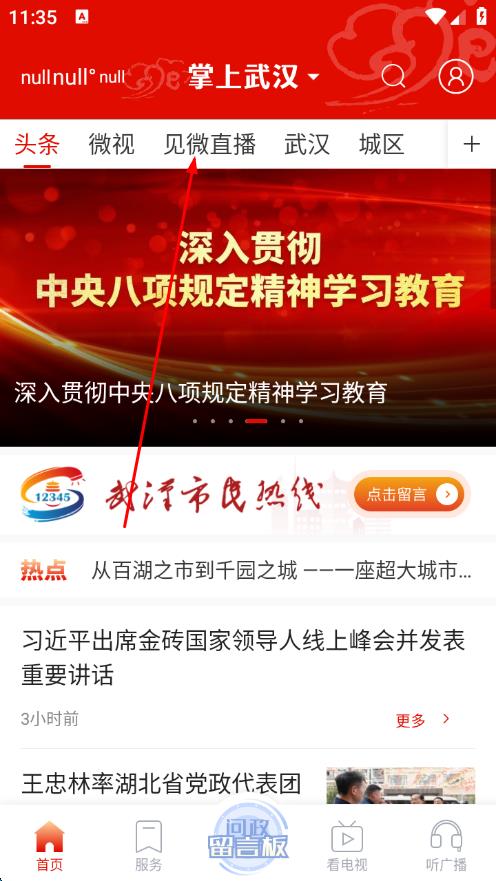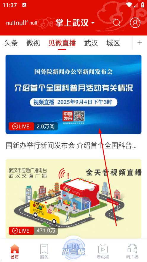 1、打開掌上武漢app,點(diǎn)擊見微直播。