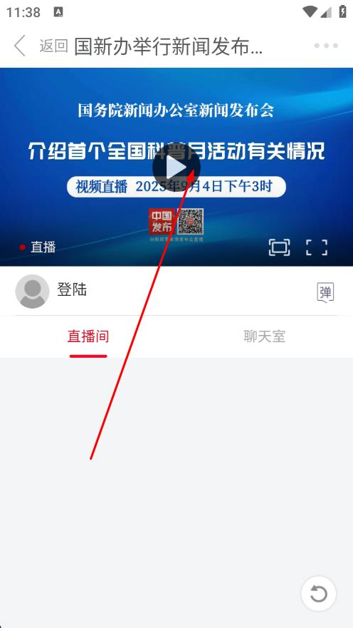 3、進(jìn)入視頻詳情頁,點(diǎn)擊播放按鈕,即可觀看直播。