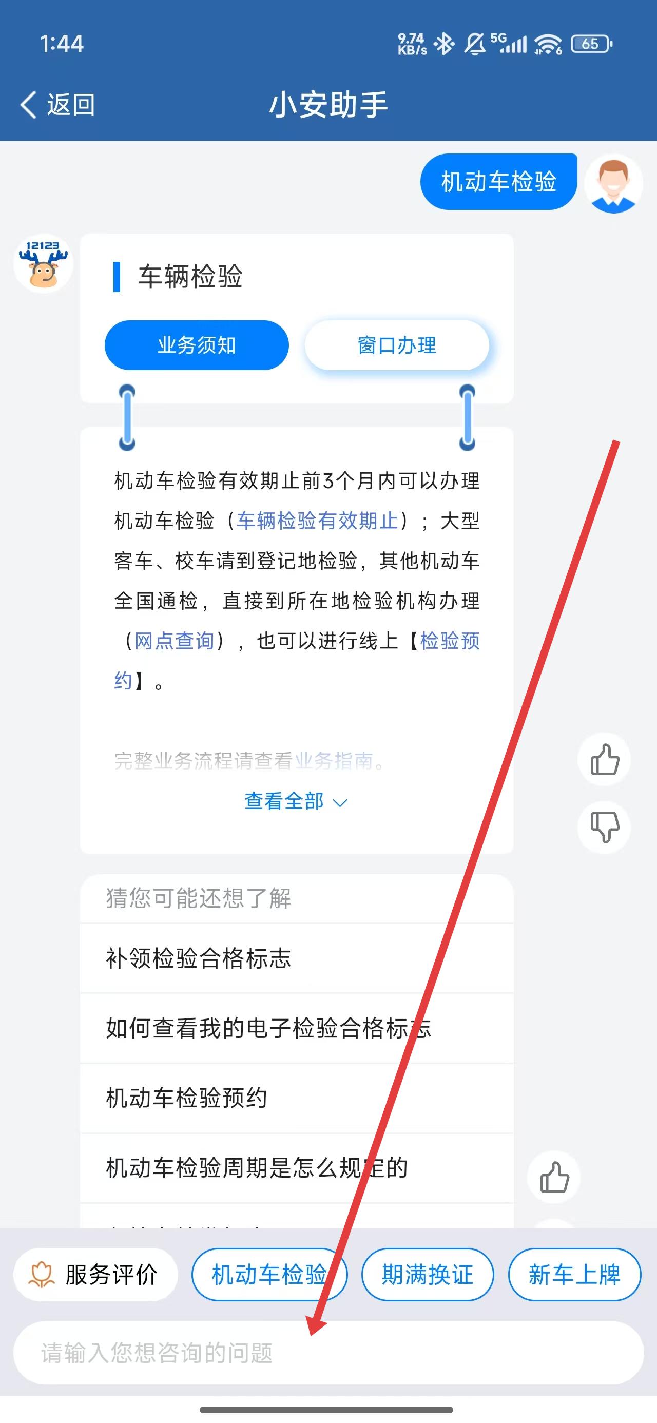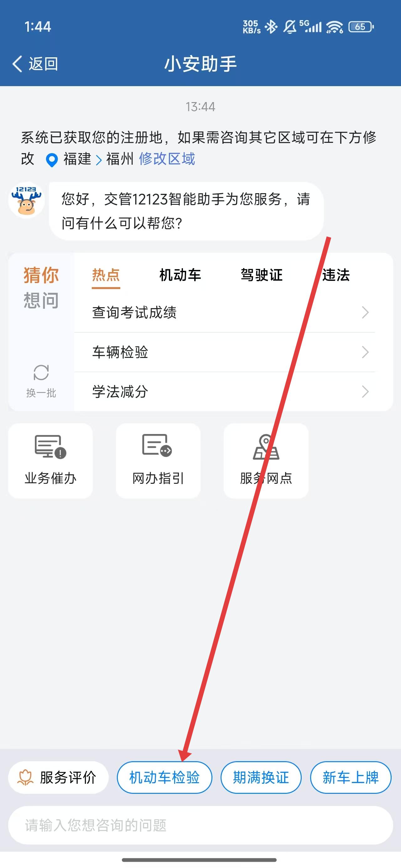 2、在跳轉(zhuǎn)到小安助手頁面中,可以點(diǎn)擊機(jī)動(dòng)車檢驗(yàn)了解相關(guān)信息。