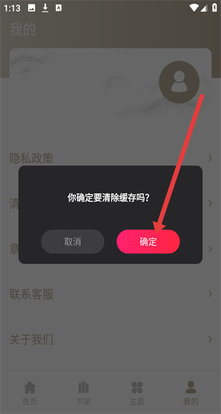3、在個人中心界面,點擊清理緩存選項,彈出確認(rèn)清除緩存的提示框。