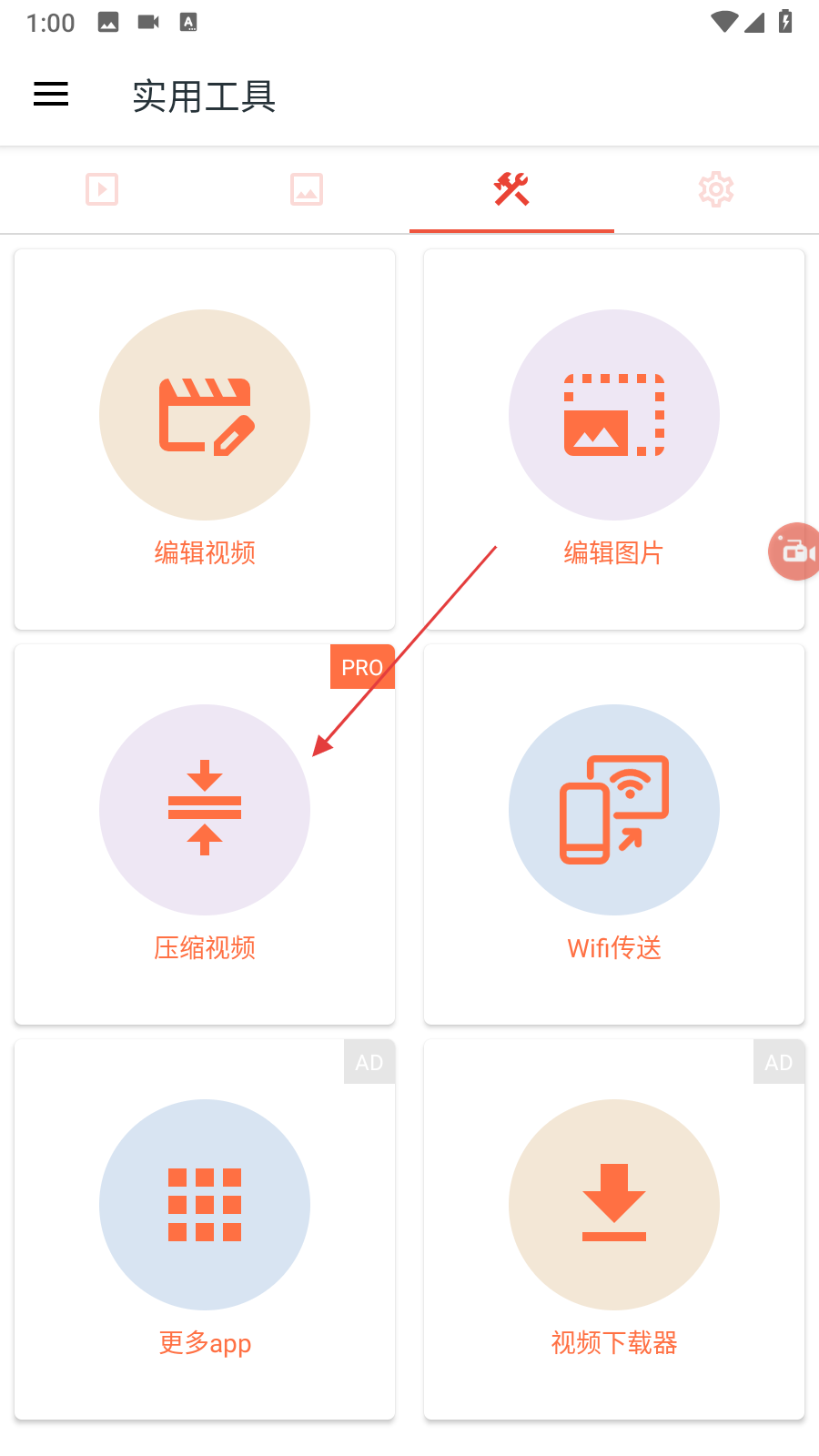 1、打開AZ Screen Recorder,在實用工具界面點擊壓縮視頻選項,進入視頻選擇頁面。
