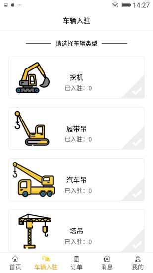 塔尖車(chē)主這里提供專業(yè)的工程車(chē)輛租賃,各位車(chē)主們可以申請(qǐng)入駐本平臺(tái),選擇自己駕駛的車(chē)輛來(lái)進(jìn)行找活接單,擁有挖機(jī)、汽車(chē)吊、履帶吊、塔吊,可以讓更多的司機(jī)機(jī)進(jìn)行入駐。線上還有買(mǎi)車(chē)市場(chǎng),你可以隨意查看,還能承接工程等,歡迎有需要的朋友下載使用。