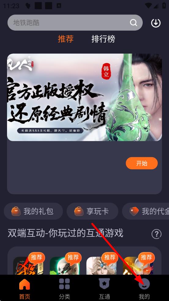 1、打開360游戲大廳APP,點擊底部導(dǎo)航欄中的我的,進入個人中心界面。
