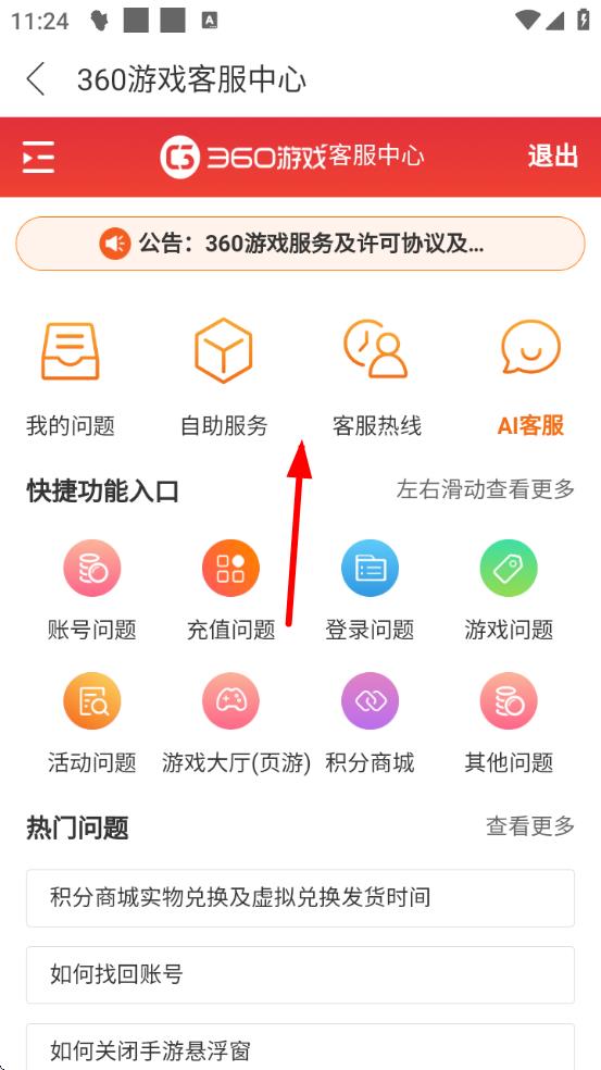 3、在360游戲客服中心頁面,可以選擇客服熱線,直接撥打客服電話;也可以點擊AI客服,在線咨詢問題。