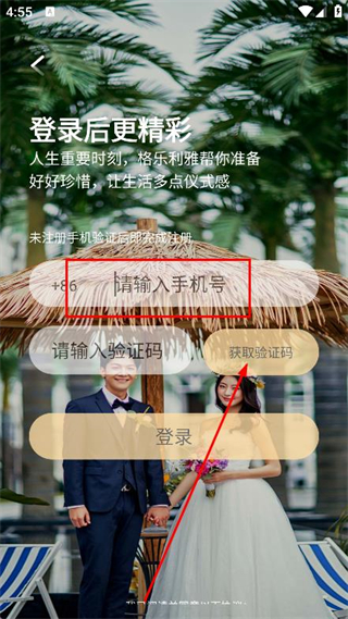 2、在登錄頁(yè)面,輸入手機(jī)號(hào)碼,點(diǎn)擊獲取驗(yàn)證碼。