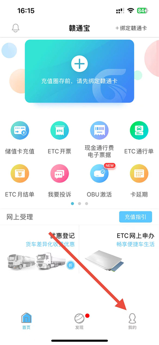 1、打開贛通寶app,在首頁點(diǎn)擊右下角我的進(jìn)入個人頁面。