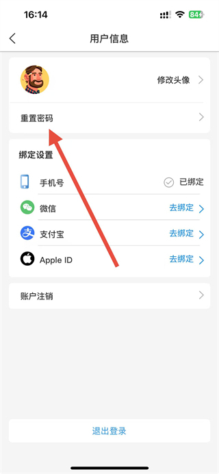 3、在用戶信息界面,找到重置密碼選項(xiàng)并點(diǎn)擊。