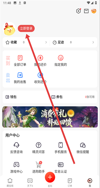 2、在進(jìn)入到個(gè)人中心頁(yè)面后,可以點(diǎn)擊立即登錄按鈕,準(zhǔn)備進(jìn)行登錄操作。
