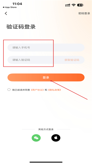 3、輸入手機(jī)號(hào)、驗(yàn)證碼后,點(diǎn)擊登錄的按鈕即可。