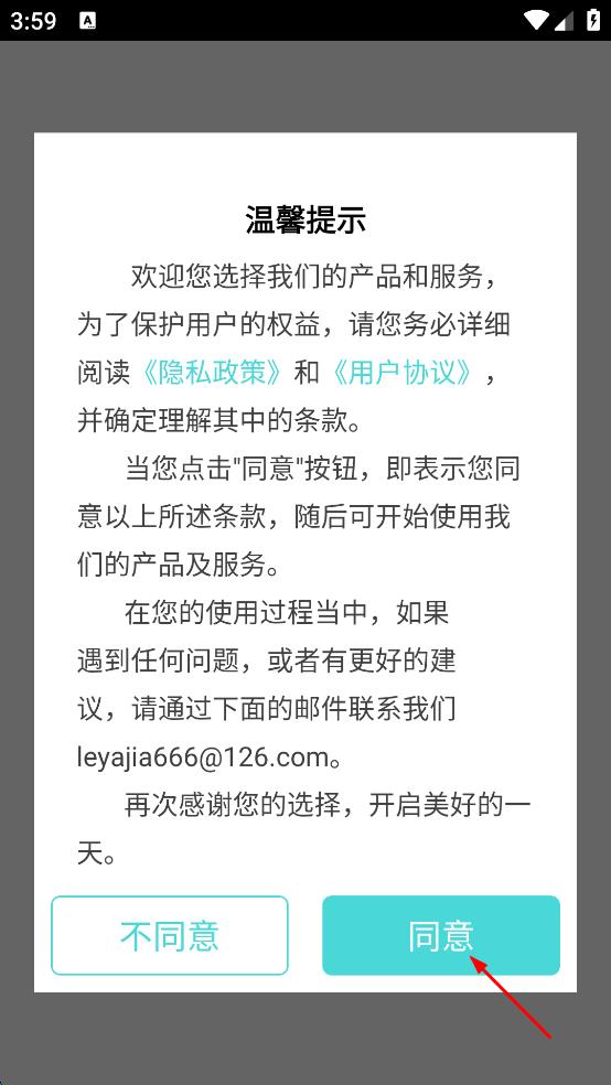1、打開(kāi)30天運(yùn)動(dòng)減肥,彈出溫馨提示,點(diǎn)擊同意,進(jìn)入軟件相關(guān)界面。