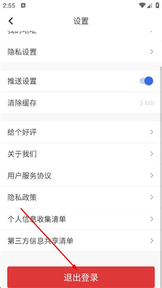 3、在設(shè)置頁面,找到并點擊下方退出登錄按鈕。