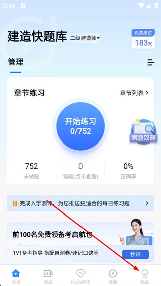 1、打開建造師快題庫APP,點擊底部導航欄我的。