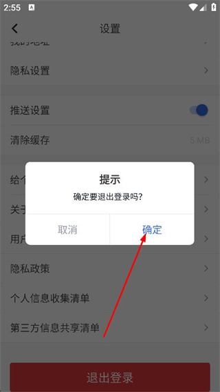4、在彈出的提示框中,點擊確定即可退出登錄。
