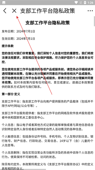 2、閱讀并確認隱私政策后,關閉該頁面,進入找回密碼。