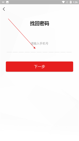 3、在找回密碼頁面輸入手機號碼,點擊下一步按鈕。