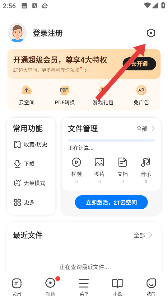 1、進(jìn)入360瀏覽器我的頁面后,點(diǎn)擊右上角的設(shè)置圖標(biāo),進(jìn)入設(shè)置的界面。