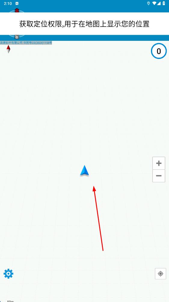2、在獲取定位權(quán)限頁面,允許應(yīng)用獲取定位權(quán)限,地圖上會(huì)顯示當(dāng)前位置,藍(lán)色箭頭標(biāo)識(shí)所在方位,可初步了解定位功能 。