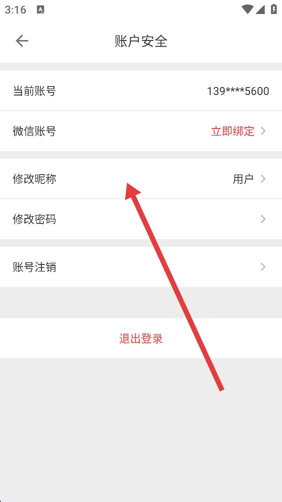 4、在賬號安全頁面,點擊修改昵稱選項。