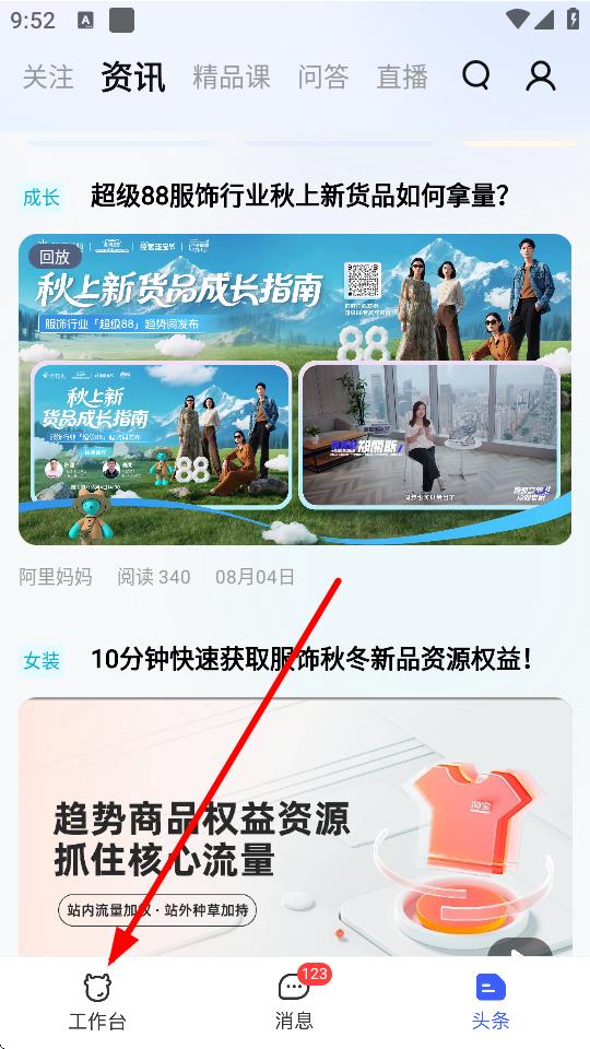 1、打開千牛app,點擊底部導(dǎo)航欄中的工作臺選項進(jìn)入工作臺頁面。