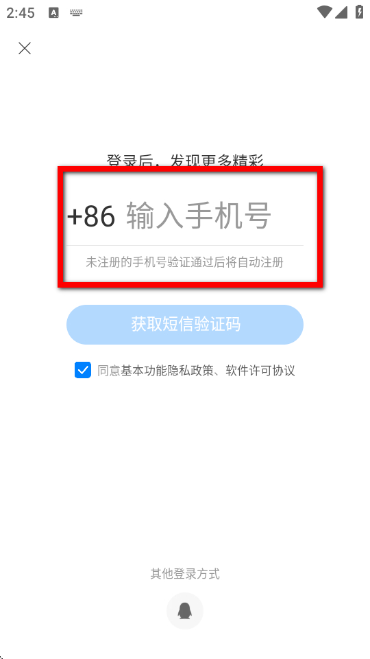 4、在手機號輸入界面,輸入手機號后按流程操作,即可完成手機號登錄。