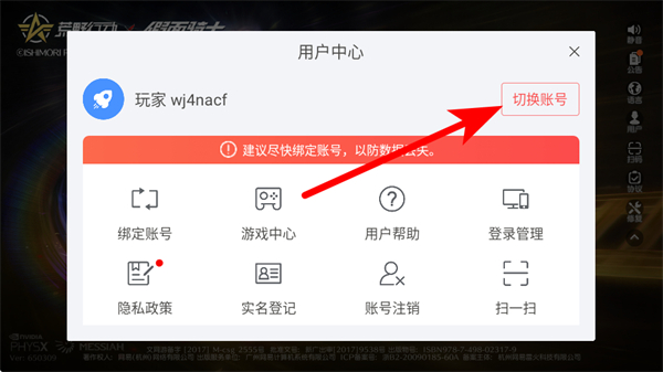 1、在游戲登錄的界面,點擊右側賬戶的按鈕,進入用戶中心。