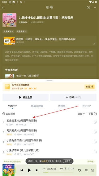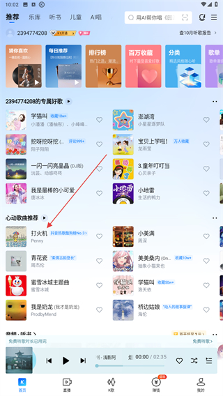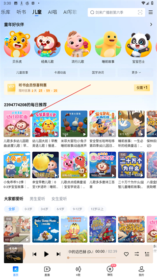2、進入兒童的頁面內(nèi),選擇并點擊要聽的歌單。