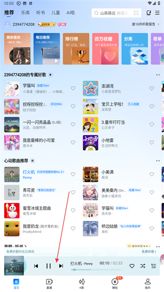 1、打開酷狗的APP,點擊要播放的音樂。