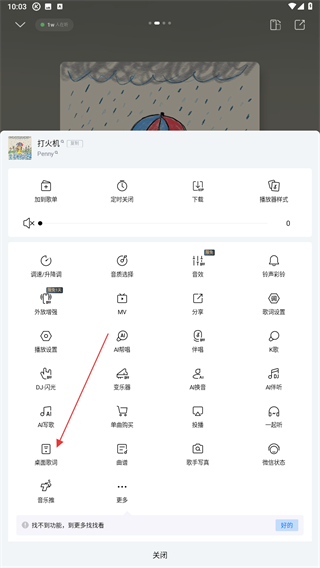 4、在下方,找到并點擊桌面歌詞的按鈕即可。