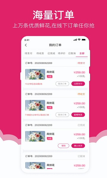 天采買花,專業(yè)的在線花卉交易平臺,提供全國各地的花卉貨源信息,用戶可便捷在線批發(fā)購買鮮花,花農花商可便捷在線交流,支持全國范圍花朵定制服務,用戶可隨時在線預訂需要的花朵產品,有需要的用戶可以下載使用!