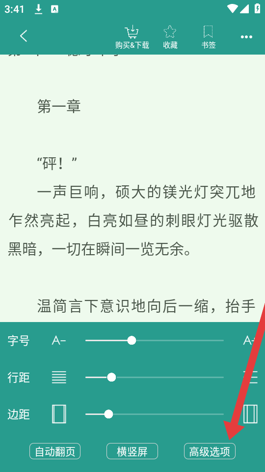 2、在閱讀小說下面的設(shè)置界面中,需要點(diǎn)擊高級選項(xiàng),來進(jìn)行解鎖更多閱讀相關(guān)的個性化設(shè)置權(quán)限。
