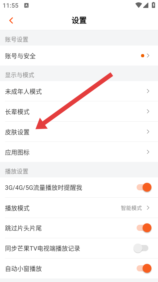 2、進(jìn)入設(shè)置的界面后,需要找到并點擊皮膚設(shè)置的選項,進(jìn)入皮膚設(shè)置的頁面。