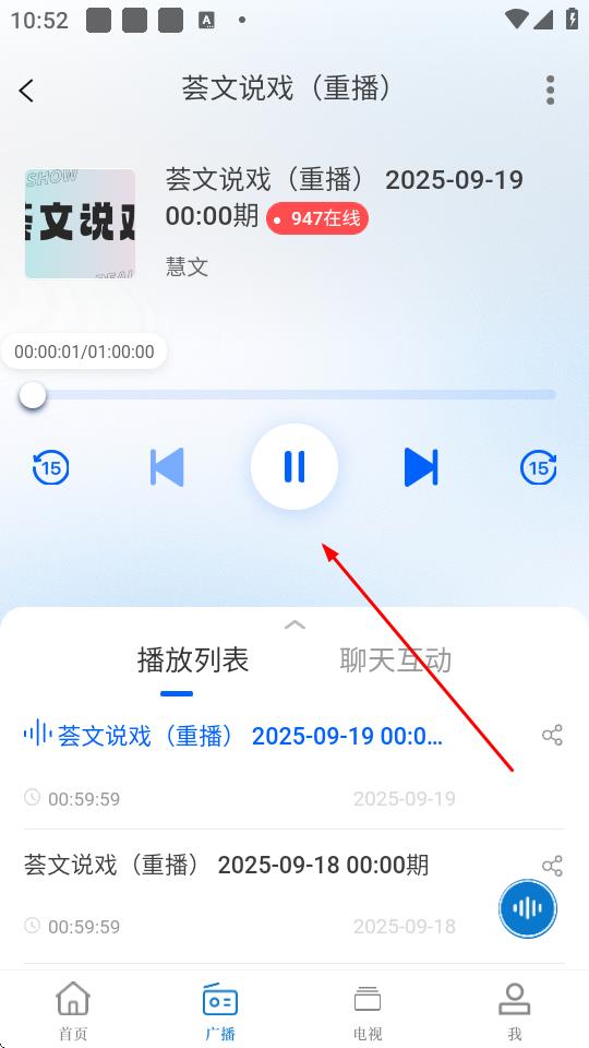 4、進(jìn)入節(jié)目回聽頁面后,點(diǎn)擊播放按鈕即可收聽。