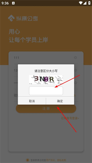 4、完成上述步驟后,點擊注冊,在彈出的驗證碼輸入框中,正確輸入顯示的驗證碼,點擊確定,即可完成注冊。