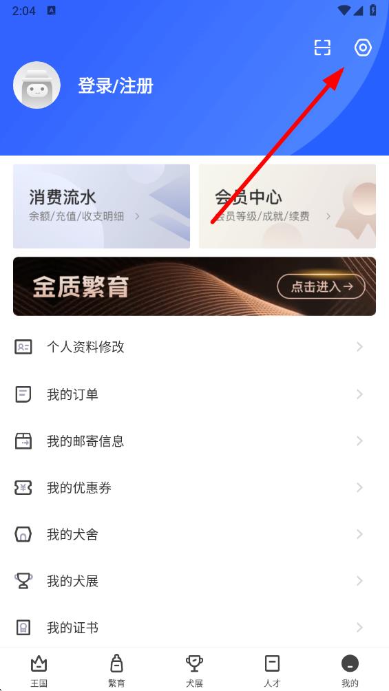 2、在個(gè)人中心頁(yè)面,點(diǎn)擊右上角的設(shè)置圖標(biāo),進(jìn)入設(shè)置頁(yè)面。