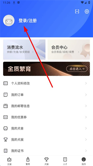 2、在該頁(yè)面,點(diǎn)擊登錄注冊(cè)選項(xiàng),進(jìn)入登錄注冊(cè)頁(yè)面。