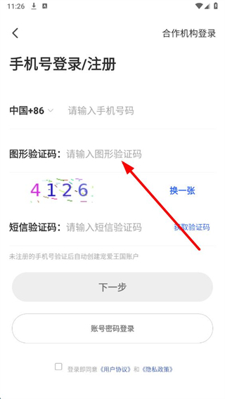 4、在手機(jī)號(hào)登錄注冊(cè)頁(yè)面,輸入手機(jī)號(hào)碼、驗(yàn)證碼,勾選同意用戶協(xié)議后完成注冊(cè)操作。