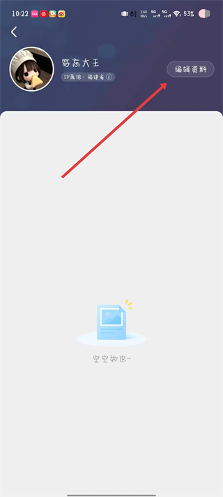 2、在個(gè)人主頁頁面找到編輯資料按鈕,點(diǎn)擊該按鈕進(jìn)入。
