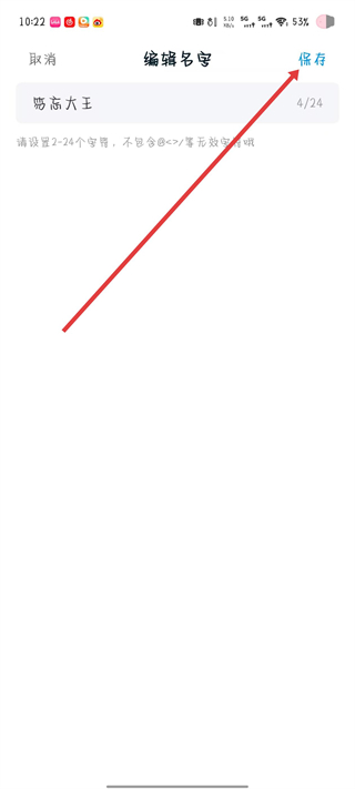 4、在編輯名字頁面的輸入框中填寫新昵稱,確點(diǎn)擊保存。