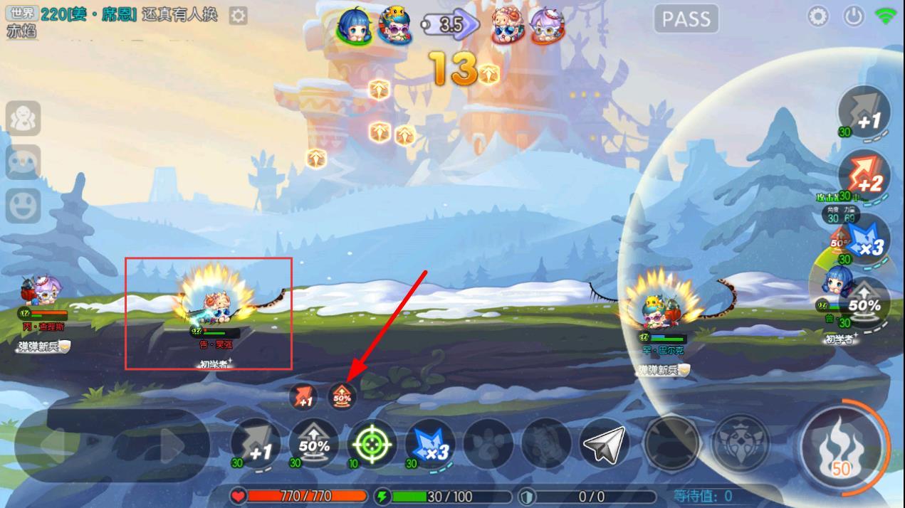 1、在彈彈堂游戲中,當(dāng)出現(xiàn)輪到你出手啦的提示時(shí),先觀察對(duì)手的位置,同時(shí)注意屏幕下方的操作按鈕。