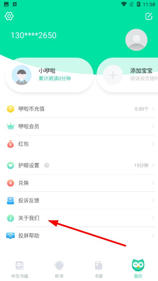 2、在我的頁面中下方找到關(guān)于我們選項(xiàng),點(diǎn)擊該選項(xiàng)進(jìn)入詳情頁面。