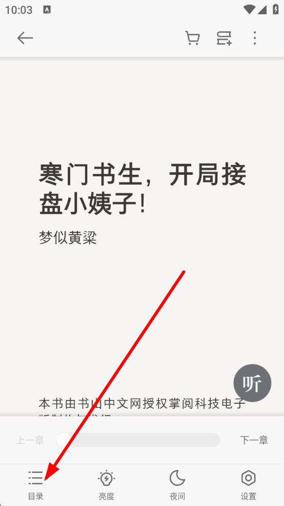 2、在閱讀界面底部,點擊目錄按鈕調(diào)出目錄列表。