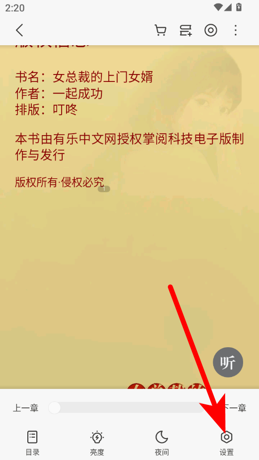 3、在閱讀界面中,點擊屏幕調(diào)出底部菜單,然后點擊右下角設(shè)置選項。